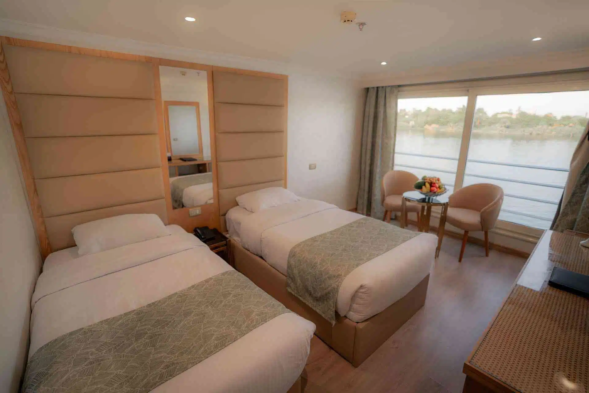 Experience the allure of ancient Egypt in unparalleled luxury and comfort aboard the magnificent Lady Carol Nile cruise ship. The Magic Lady Carol offers an outstanding onboard experience, where every detail is meticulously crafted to ensure your utmost satisfaction. From the moment you step aboard, you’ll be enveloped in an ambiance of refined sophistication, where impeccable service and warm hospitality are the hallmarks of your voyage. Indulge in spacious and tastefully appointed cabins, savor delectable cuisine, and unwind in stylish lounges and sundecks as you soak in the breathtaking scenery.