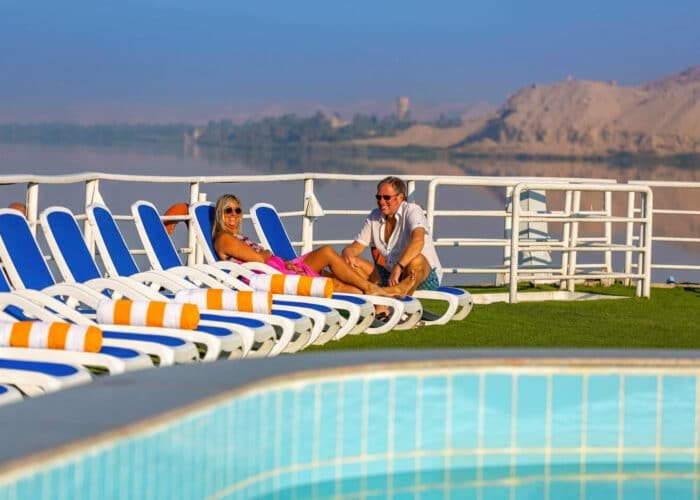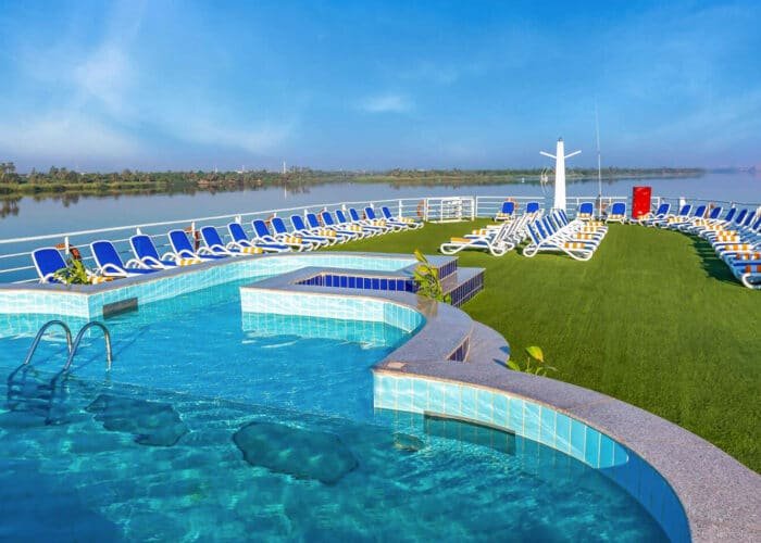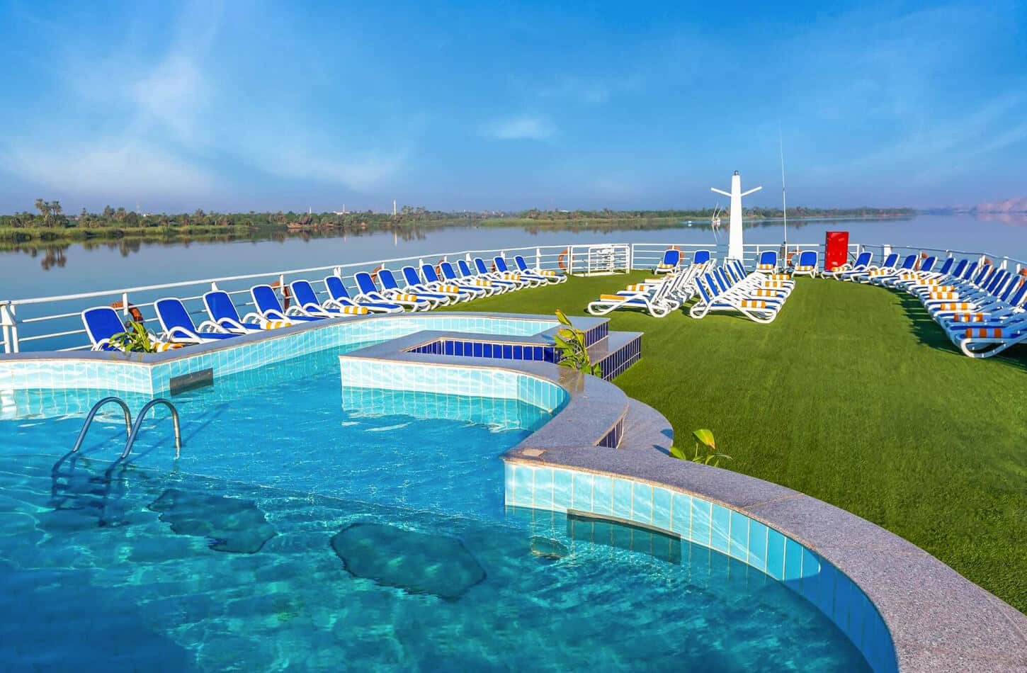 Guests can savor freshly prepared meals inspired by both Egyptian and international flavors, unwind on the sun deck with its refreshing pool, or enjoy evenings filled with entertainment and soft Nile breezes. Guided tours bring you face-to-face with iconic landmarks such as the Valley of the Kings, Karnak Temple, Philae Temple, and more—always led by professional Egyptologists who enrich every moment with fascinating insights.